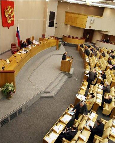 俄罗斯国家杜马:俄罗斯联邦会议的下议院,有450个议席。参加议员的资格为最少21岁以上的公民,任期四年