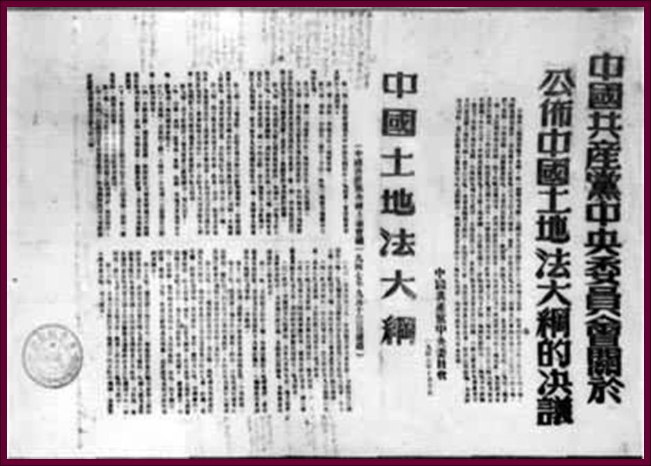 1947年制定的《中国土地法大纲》是消灭封建剥削制度的纲领性文件,为中华人民共和国成立后进行的土地改革提供了经验