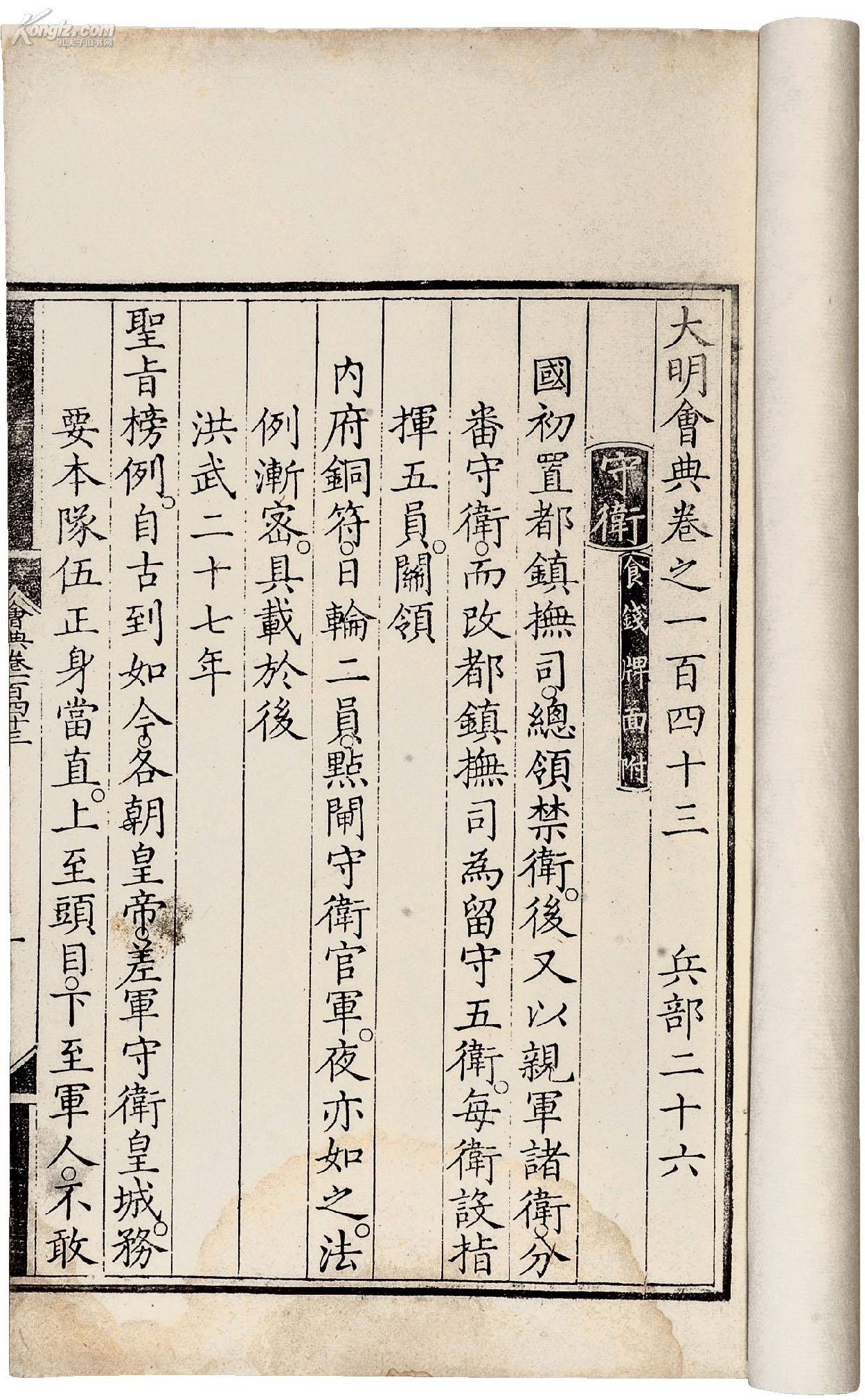《明会典》是明代官修的一部以行政法为主要内容的法典,以六部官制为纲,分别记述了各行政机关执掌和事例,各衙门的编制、职掌、隶属以及活动准则,为明王朝进行行政管理提供了法律依据。《明会典》成为清朝行政法典的蓝本。