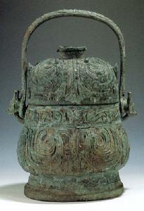 青铜卣为古代盛酒器,是古代祭祀中专门用来盛酒的祭器。青铜卣最早出现于商代晚期,盛行于商末周初。青铜卣形状似壶而有提梁,故又名“提梁壶”。一般来讲,青铜卣多为椭圆体或椭方体,也有筒形和方形的,还有少量的鸟兽形。