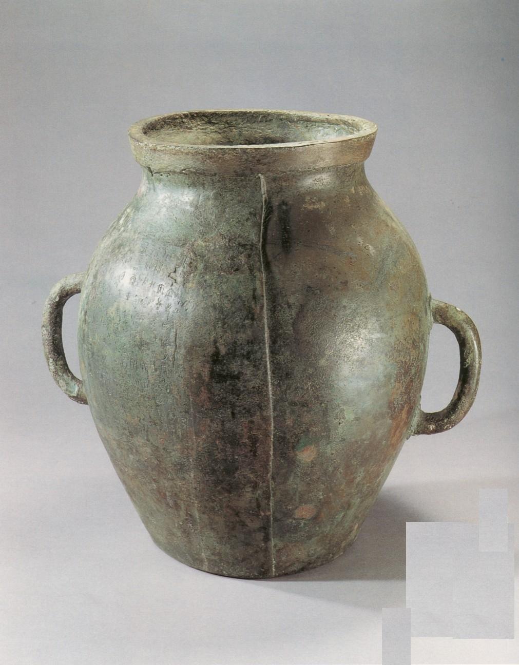 子禾子釜、左关 钅和 与陈纯釜一道并称为“齐量三器”。子禾子釜为直口大腹,溜肩平底,腹部有半月形双耳,肩下部有铭文十行;因伤残锈蚀,能识者近九十字,内容是告诫官吏使用标准量器,不得犯戒舞弊,违者论其轻重,施以相应惩罚。由此可见,战国时期度量衡已有明确的校量制度和严格的管理措施。